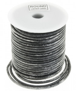 Rund lädertråd på spole. Färg svart & vit. Diameter 1,5 mm. Längd 50 m