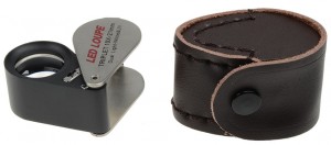 UV-lupp 21 mm för noggrann färgåtergivning. Kontroll av stenens kanter. LED-ljus i ring runt linsen, plus UV-ljus för fluoroserande test av äkta stenar. fluoroserande test av äkta stenar. I svart med matt kromat hölje. Levereras i läderetui. Utbytbara batterier.